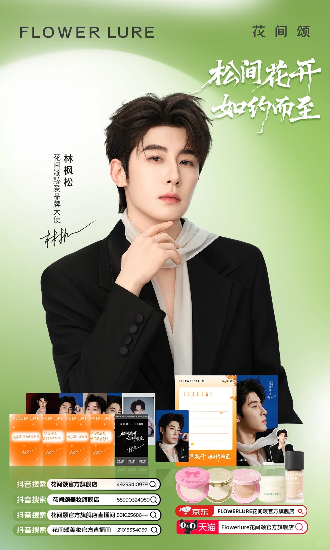 作为近年来备受瞩目的新生代演员,林枫松凭借在多部热门影视作品中细腻的情感演绎,积累了大量拥趸,其清新俊朗的形象与花间颂主打的“东方浪漫主义”高度契合。