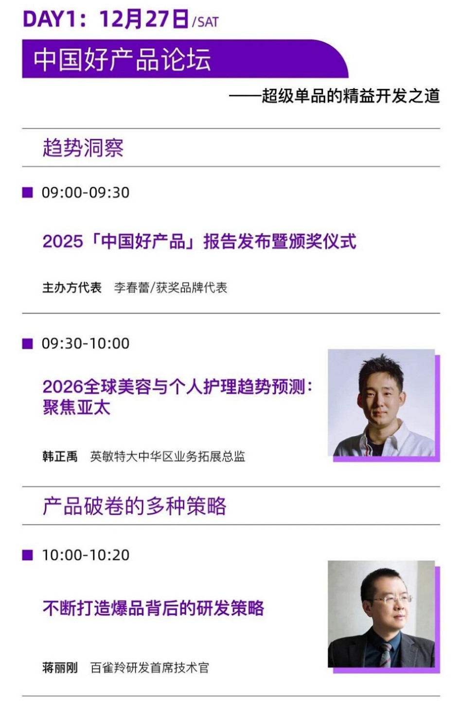 品牌创始人论坛×中国好产品论坛×成分趋势及前沿技术论坛,从「宏观-中观-微观」的视角——涉及到品牌战略的方向、产品策略的设计以及成分技术的应用等环节,帮助各位产品人寻找逆势而上的全新增长点。